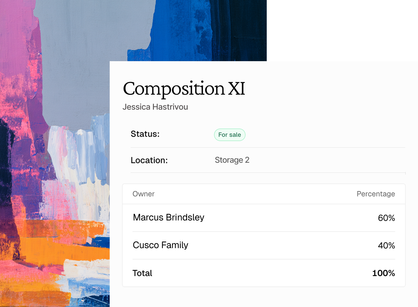 How many works are available? Total sales this year? Which artist performed best? Get answers from your data.