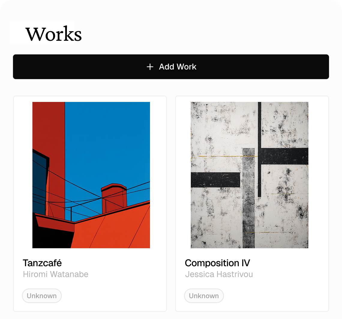 Create your account. Add your first work. Up and running in minutes.